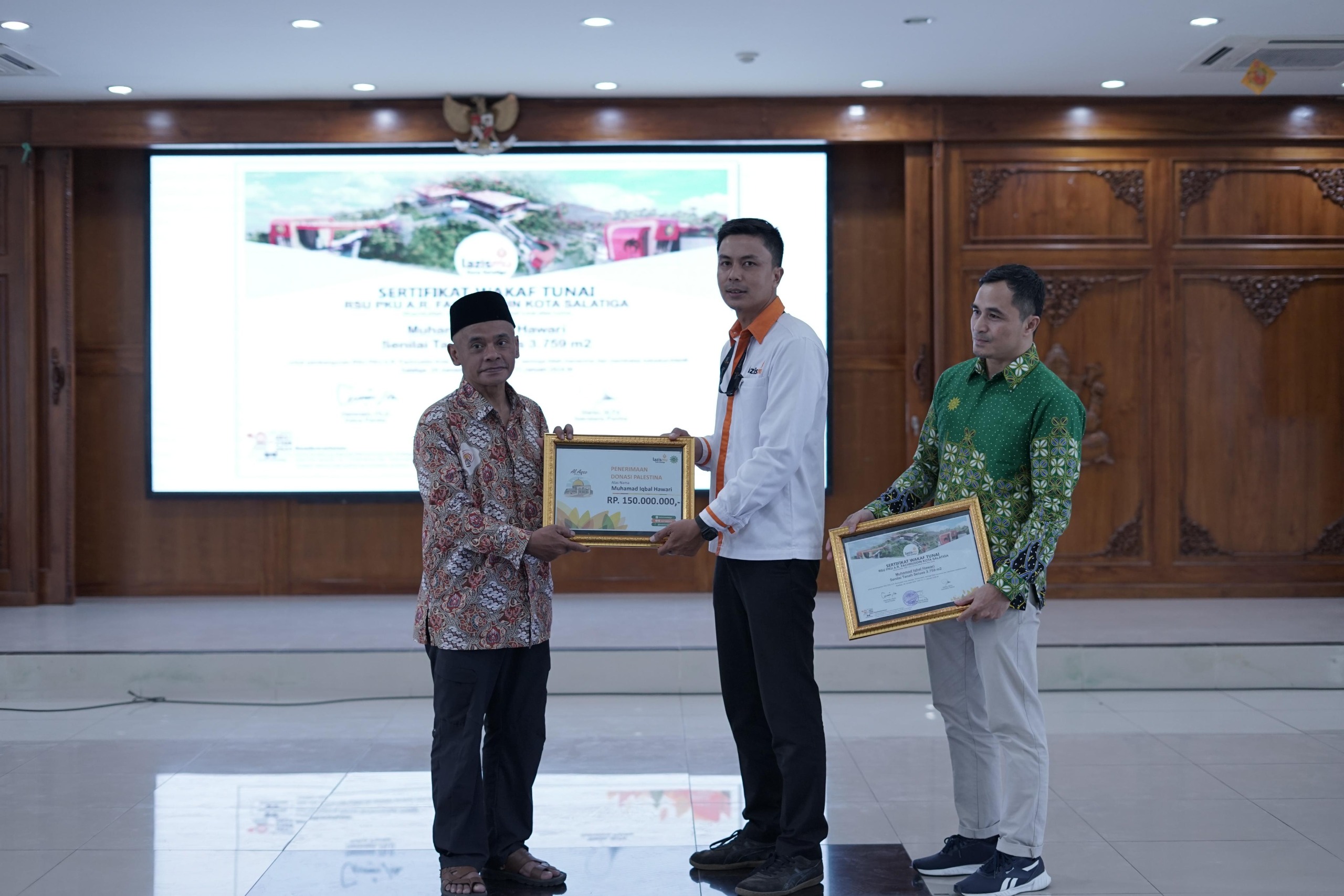 Simbolis Penyerahan Sertifikat Wakaf dan Donasi Palestina : Lazismu menggelar kegiatan Berdaya untuk RSU PKU Ar-Fachruddin dan Korban Palestina
