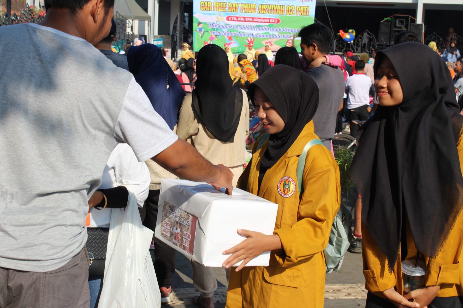 Selain galang dana untuk Maroko dan Libya, Lazismu Pati yang di wakili oleh Manager Lazismu Pati yaitu Luthfi Wildani, Lc dan Kepala Divisi Fundraising Eka Nugraha, SM juga melakukan sosialisasi zakat dan infak pada kegiatan Car Free Day yang diadakan oleh TK ABA 2 Pati sekaligus menyalurkan bingkisan kepada Lansia Dhuafa.